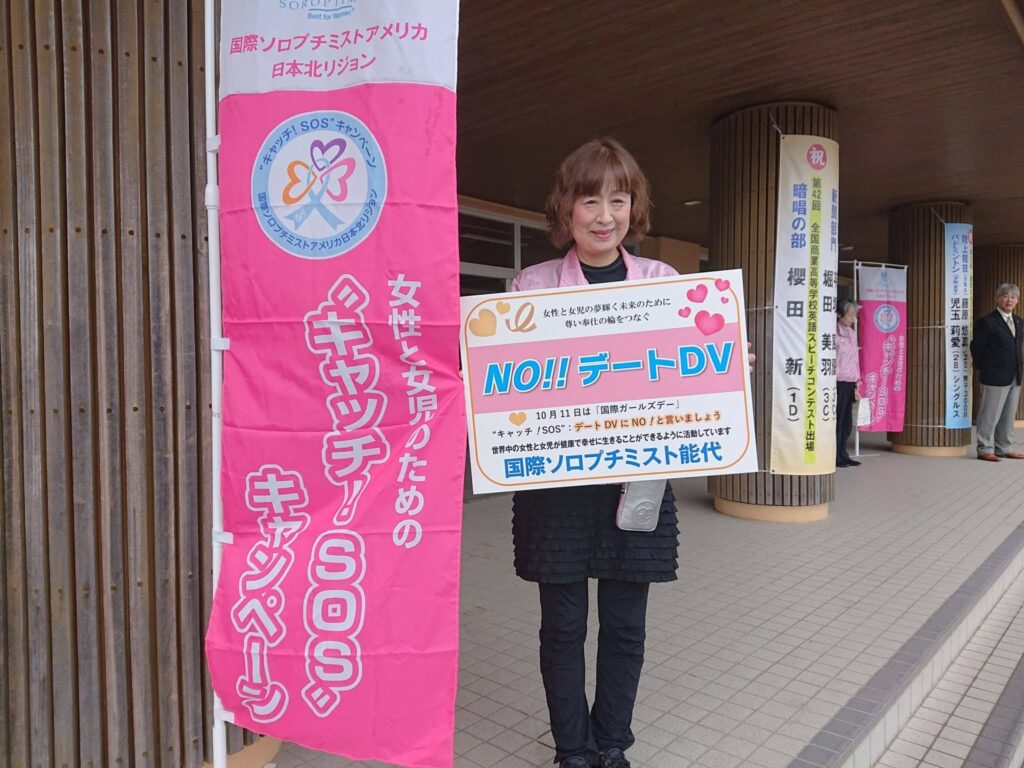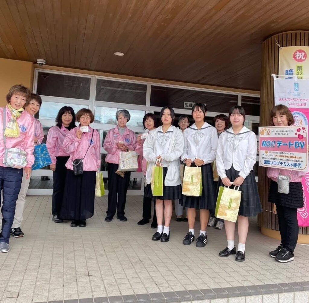 「国際ガールズデー」 2025.10.8 「国際ガールズデー」 10月8日 朝7:30~ 秋田県立能代松陽高校にて登校の生徒さんへデートDV撲滅の啓発ティッシュを500部配布いたしました。Sクラブ書道部の生徒5名 SI能代会員9名、および、校長先生も参加していただけました。