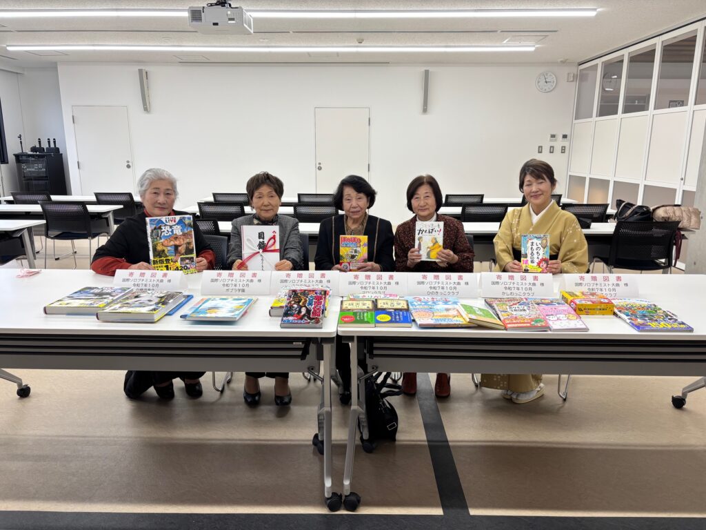 大瀧賢一郎チャリティコンサートが、9月28日に開催され、その収益金より、各地域(大仙市、仙北市、美郷町)に児童図書を贈呈することにいたしました。10月31日に、仙北市役所で、寄贈する児童図書に「寄贈シール(国際ソロプチミスト大曲名入り)」を貼り、その後贈呈いたしました。