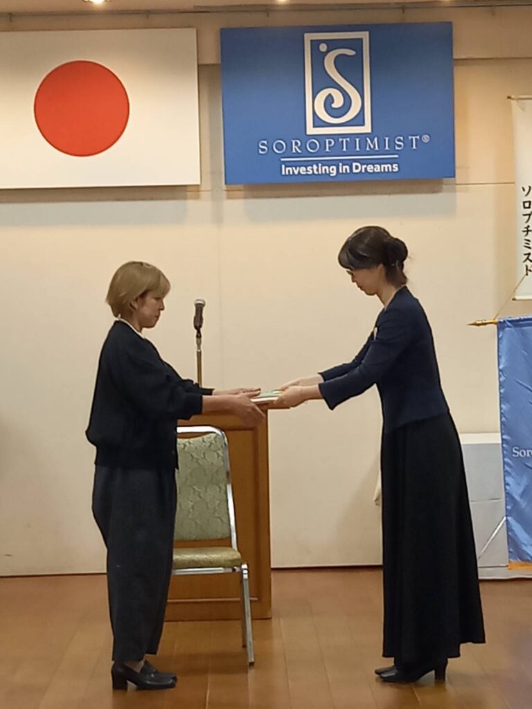 10月15日に、新入会員である嵯峨綾子さんの入会式が執り行われました。紹介者は、山田裕子会員と播摩恵美会員です。嵯峨綾子さんは、フラワーショップを経営され、会員とも友好があり、自ら国際ソロプチミスト大曲に入会したいと熱意とやる気のある方です。会長エレクトから会員ピンとソロプチミストの関係資料が渡され、会員全員で記念写真を撮りました。新たなメンバーを迎え、SI大曲は、31名となりました。
