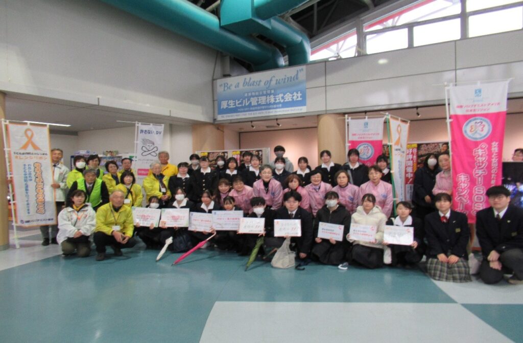 秋田ふるさと村にて子供虐待防止(オレンジリボン)、DV及びデートDV防止活動を実施。Sクラブの県立横手城南高校生22名・県立羽後高校生3名、人権擁護委員・少年保護育成委員・横手市・横手警察署からも参加、当クラブ会員11名を含め総勢55名で活動。チラシ・パンフレット・マスク・ティッシュペーパーなど約750部を配布。