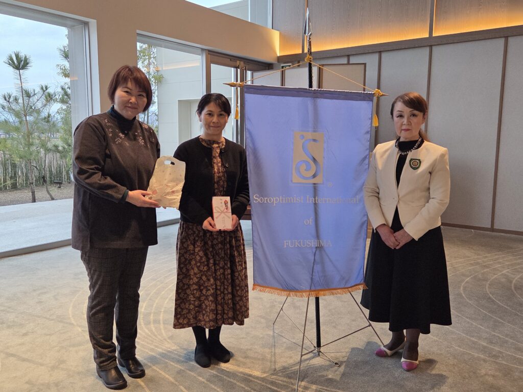 12月25日の例会において、以前開催いたしましたクリスマスチャリティディナーコンサートの会場で皆様からお預かりした卓上募金(総額108,460円)を「福島南子ども劇場」様へ贈呈しました。福島南子ども劇場様への支援は、二年前に続いて今回で二回目となります。コンサート当日に温かいお気持ちをお寄せ下さった皆様に心より感謝申し上げます。今回の寄付金は子どもたちが優れた舞台芸術に触れる機会を作るための活動などに活用していただく予定です。今後も地域の子どもたちの健やかな成長を支援する活動を継続してまいります。