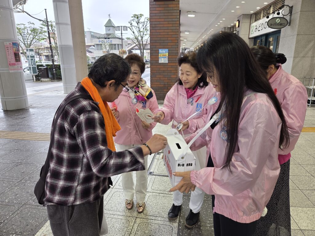 10月11日(土)福島駅前で赤い羽根共同募金の活動をしました。これは毎年参加している活動で、今年は11名が参加しました。二ヵ所に分かれて募金を呼びかけました。小雨が降って、気温も12度台になり、人通りが少なかったものの足を止めて募金して下さる方も多く、ねぎらいの言葉をいただいてあたたかい気持ちになりました。
