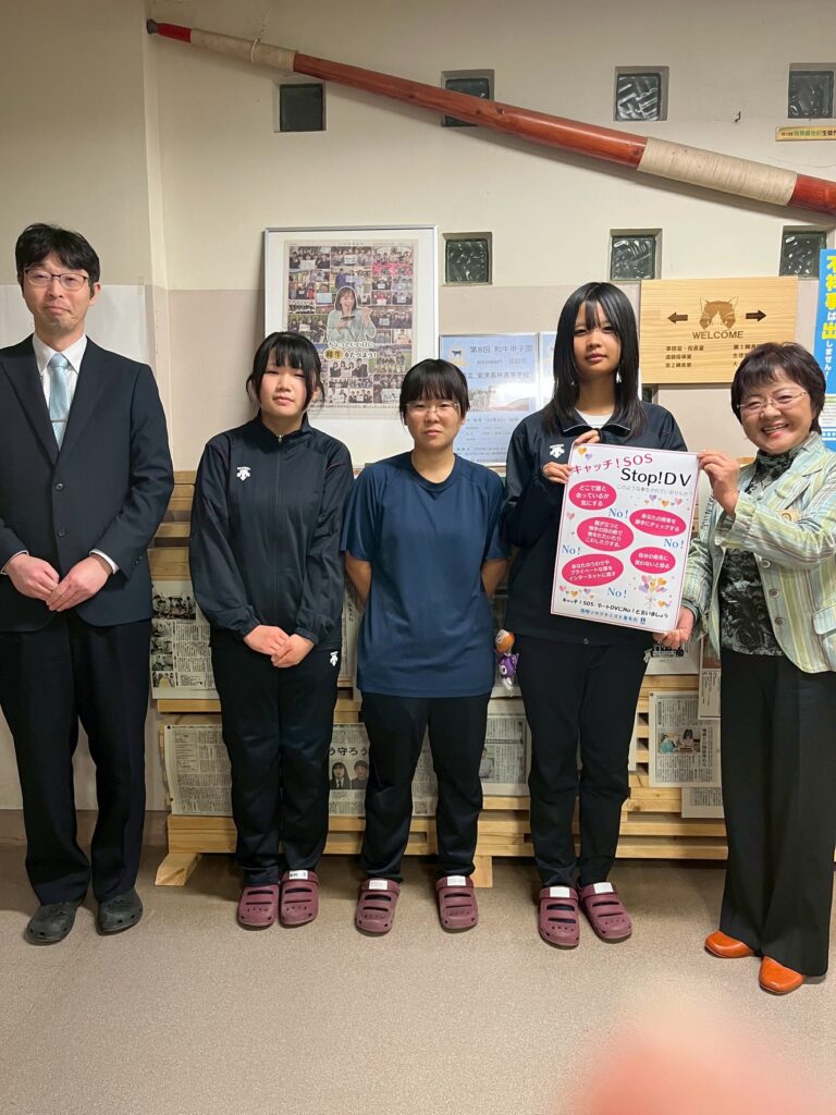 国際ガールズデーにちなみ高校生を対象に喜多方市内にある県立会津農業高等学校を訪問し校内の掲示板に“キャッチ!SOS”キャンペーンポスターを作成し貼らせていただきました。その際、女子高校生にチラシも手渡しました。学校側も大変協力的に受け入れていただきました。