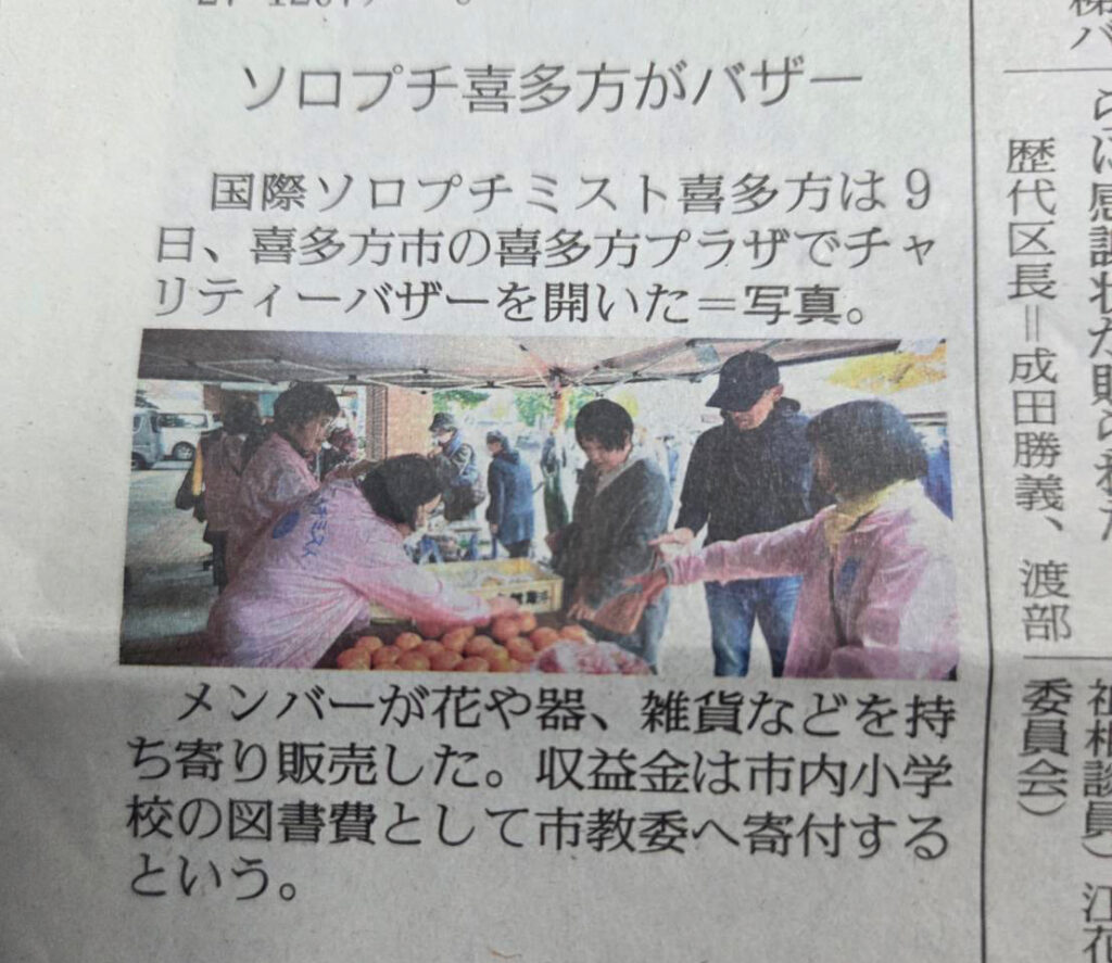 チャリティーバザー 2025.11.9 2025年11月9日喜多方市の喜多方プラザに於いて産業・農業まつりが開かれた会場のブースで恒例のチャリティーバザーを開催した。メンバーが雑貨や衣類・花・野菜・食品など持ち寄り販売した。収益金は喜多方市内小学校の図書費として市教育委員会に寄付する。