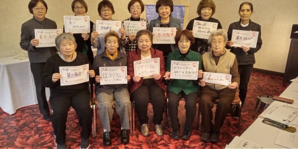 「女性に対する暴力撤廃の国際デー」 2025.11.18 11月例会の折に会長と広報委員長より趣旨説明したのち、当日出席会員11名がキャンペーンボードを作成しました。今後身近な女性への呼びかけやSクラブへの啓発活動に役立てます。