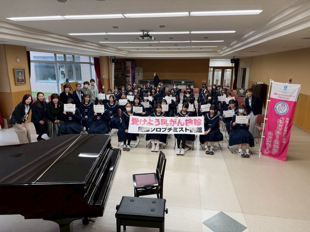 キャッチSOSキャンペーン 「乳がん撲滅キャンペーン」「デートDV」「女性に対する暴力撤廃の国際デー」 2025.10.28 10/18「夢を拓く 女子中高生の為のキャリアサポート」を函館白百合学園にて 開催され 80名の生徒さんへ女性への暴力撤廃の国際デーとその活動のお話をさ せて頂き 最後に乳がん撲滅のポスター、ボードを掲げ記念写真を撮りました