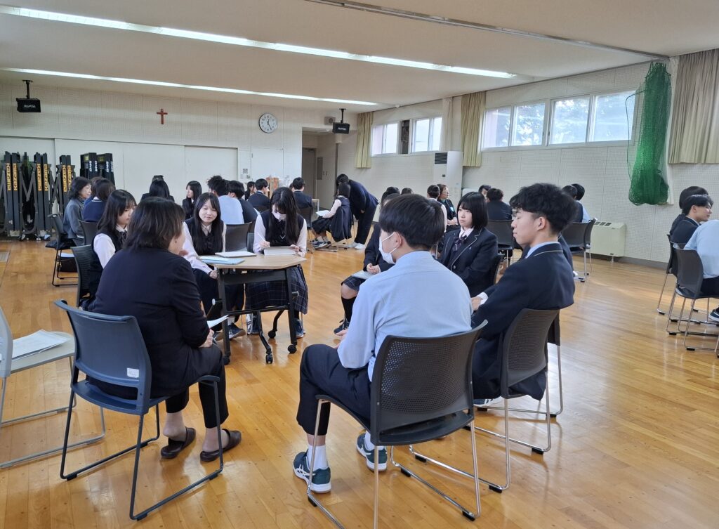 今年も2年生一クラス対象に「茶話会」を行いました。今年は5グループに分かれて会員を配置し、司会進行、記録、発表を生徒に任せ会員の卓話のテーマ「ボランティア活動」に沿ってグループトーキングを進めました。藤高等学校は毎年清掃遠足や今年はハーフマラソンの給水活動等を行っているので、日常で出来る小さな事やボランティア活動を行う上で大切な事、心構え等話し合っていました。生徒達一人一人ボランティアについて考えてもらえるきっかけになったかと思います。参加人数 学校サイド2名 生徒39名 会員9名