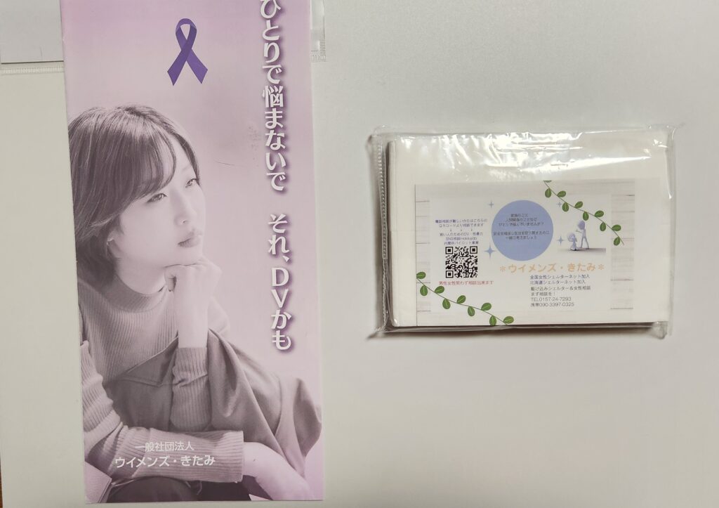10月28日イオン北見店様正面玄関前で“キャッチ!SOS”キャンペーンを13名の会員と行いました。ウィメンズ北見様からご提供頂いたパンフレット入りテッシュを配布し、「国際ガールズデー」「女性に対する暴力撤廃の国際デー」の啓蒙活動をおこないました。多くの皆さんにこの活動を知ってもらい、デートDVや女性に対する暴力撤廃の一助になればという気持ちで街頭活動を行いました。