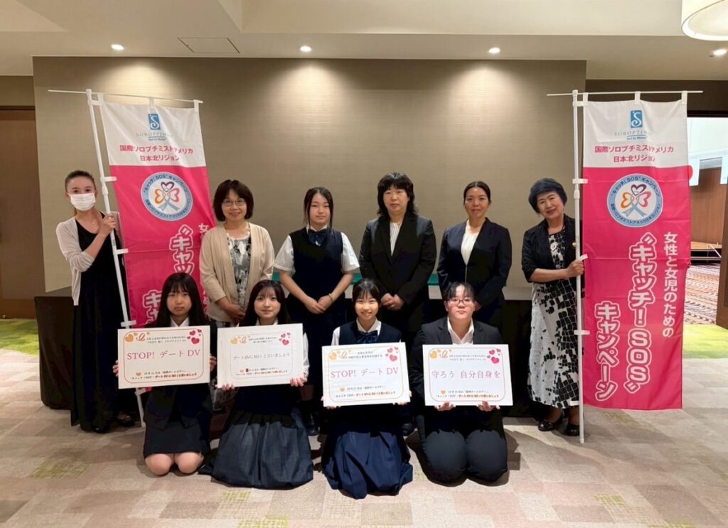 国際ガールズデーに因み、スポンサーしている女子生徒に協力いただき、キャッチSOSキャンペーン活動を行いました。10月11日、国際社会の呼びかけは自己肯定感を高め、自立した意思決定を支援するもので「Yes」「No」をはっきり示すことができる等女子の権利を擁護するものです。当日は「守ろう 自分自身を!」「デートDVにNOを言いましょう!」のボードを掲げて写真を撮影しました。
