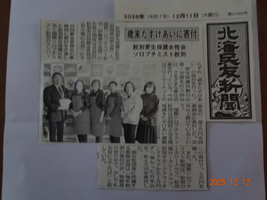 本年で45回目の歳末助け合い寄付を社会福祉協議会へ会員3名でお届けしました。