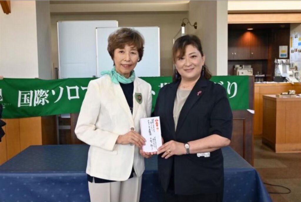 表彰式では、とかち女性がん患者の集い「プレシャス」へ収益金の一部5万円を贈呈。鈴木代表からは「活動を伝えるパンフレット作成に役立てたい」と感謝のお言葉をいただきました。