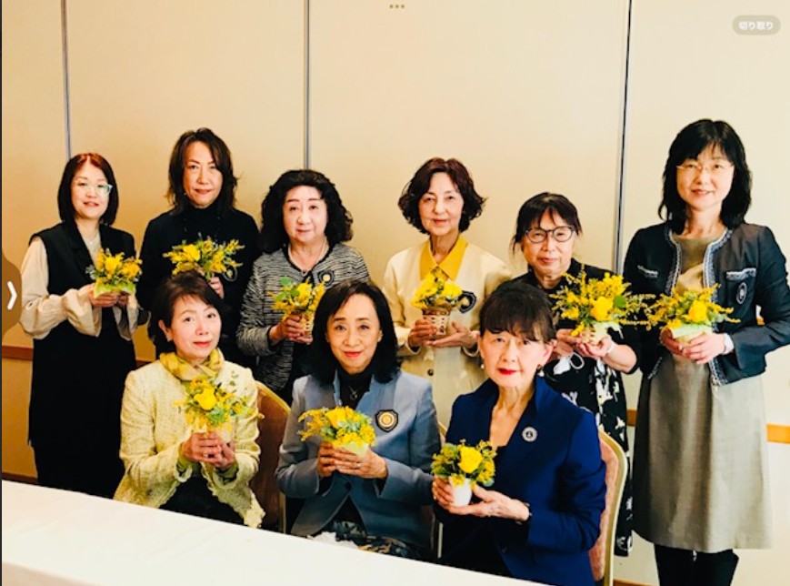 2 月 25 日(水)2月例会後に 国際女性デーシンボルフラワーのミモザアレンジメント作成を会員皆で楽しみながら、女性デーの意義を話し合いました