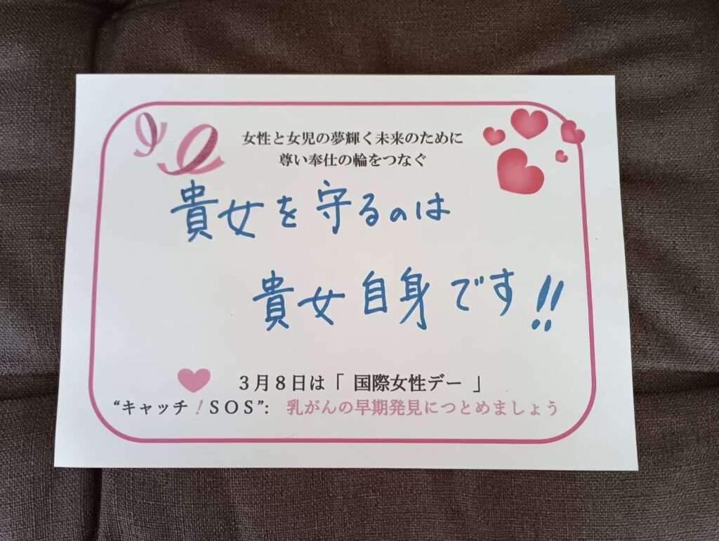 SIおとふけは『乳がんの早期発見』の啓発活動を3月例会時に思い思いのメッセージを書いて