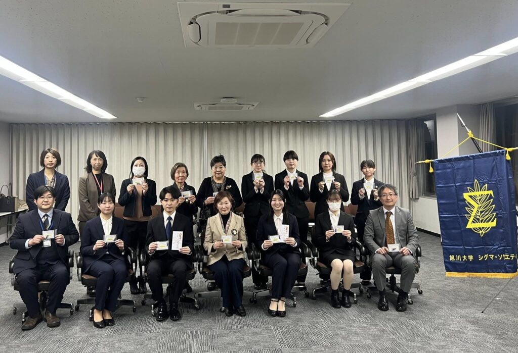 旭川市立大学にて「クリスマス企画学生有志の会」の入会式と助成金贈呈式を開催しました。クリスマスに一人暮らしのお年寄りのところにケーキを持って訪問し、楽しいクリスマスを過ごしていただくという活動をしているこの会に今年度は22名が入会。ボランティア活動に参加する学生の方が増えるのは嬉しいです。昨年は「子どもの未来を考える会」というボランティアサークルにも少しばかりの助成金を差し上げました。そのサークルの活動報告も伺うことができました。そして、今年度は、「Glow up」という子どもたちのお勉強サポートをしているボランティアサークルに助成金を差し上げました。