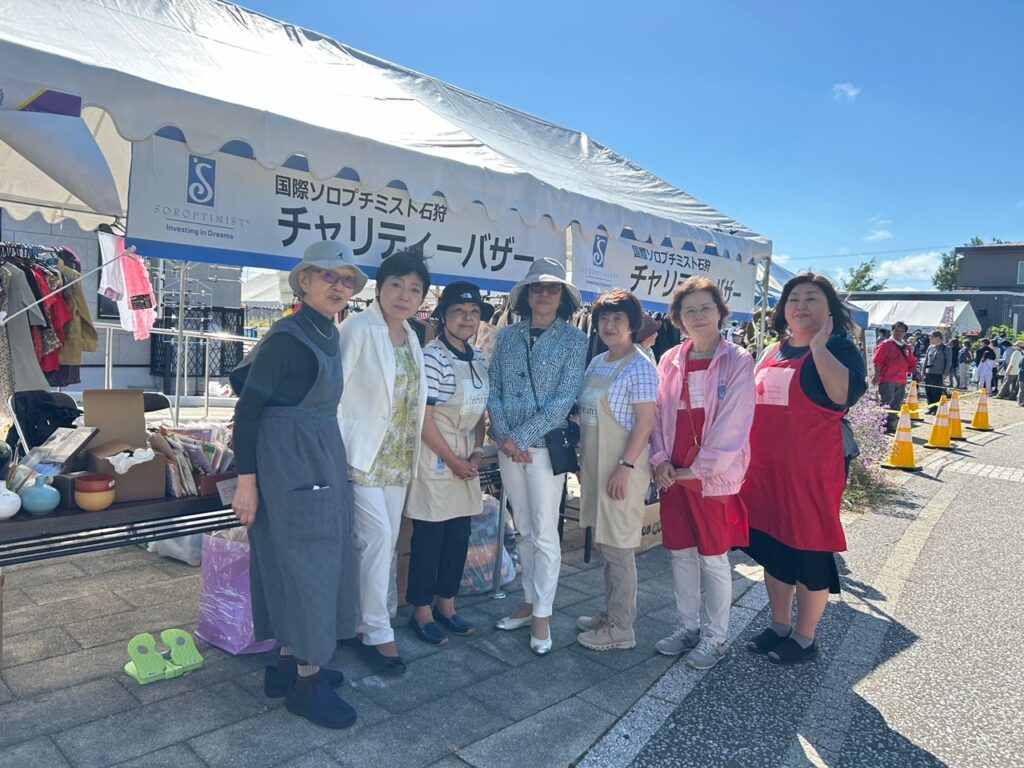 SI石狩 サケ祭りチャリテイーバザーに参加 2025.9.27 9/27(土)姉妹クラブSI石狩さんの「サケ祭りチャリテイーバザー」に中野会員と佐藤会員が 参加してきました。 当日はお天気にも恵まれ会場はたくさんの人で大賑わい! 姉妹クラブとの交流に大変有意義な一日となりました。 ※写真は昨年の様子です