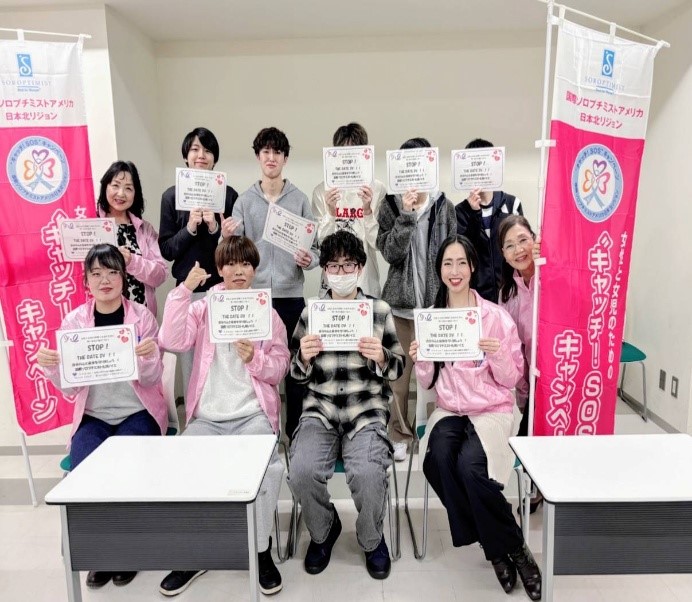 女性に対する暴力撤廃の国際デー 2025.11.18 日本医療大学臨床工学科でボード・ジャンパー・幟・パープルリボン・オレンジリボンティッシュを活用し【暴力撤廃の国際デー DV防止キャンペーン】を実施、ピンクリボンとイエローグリーン各リボンを紹介しました。