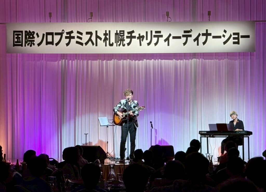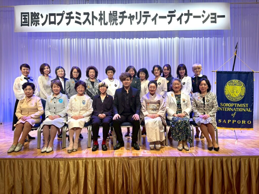 札幌グランドホテルを会場に、339名のお客様でした。小熊会長の開会挨拶に続き、札幌市児童相談所所長、宮本まゆみ様より札幌市の児童虐待の現状や、当会のオレンジリボン寄贈についてお話いただきました。また、盛岡より篠村千恵子ガバナー、函館より河村めぐみセクレタリーもお越しくださり、篠村様からも一言ご挨拶を頂戴しました。美味しいお食事に続き、川島ケイジさんがお客様の間から登場。長身、甘いマスクにセクシーなハスキーボイス、オリジナル曲、カバー曲、アンコールも2曲歌われあっという間の1時間でした。同時開催のバザーにも沢山のお客様でした。