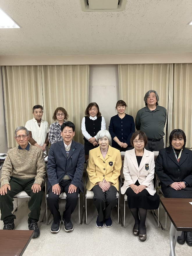 勢揃いした中助成金をお渡しいたしました。温かいおもてなしを受けて会員の皆様と