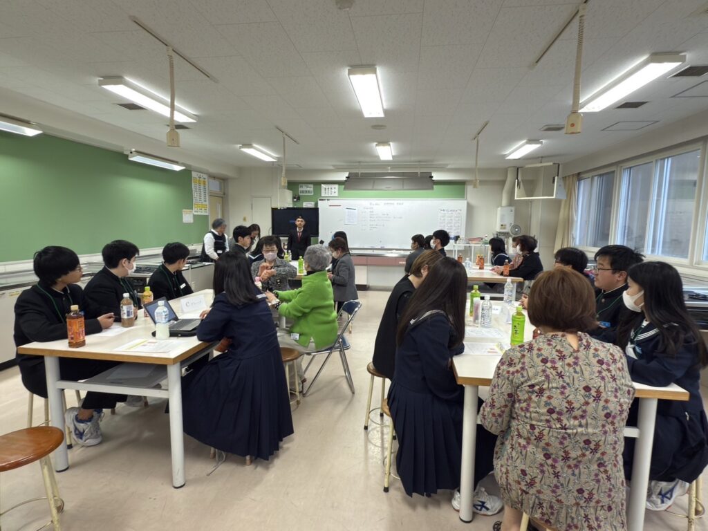 苫小牧市立光洋中学校インターナショナル部20名、先生2名、講師のニラジ様と助手のタカリスミット様、会員12名で茶話会を開催いたしました。ニラジ様が映像を交えて自国ネパールの紹介や日本に来た理由などのお話しをいただき、その後生徒のみなさんからニラジ様へ積極的な質問の場面も見受けられました。全員で飲み物とドーナツを食べながら一息ついた後には、4グループに分かれたグループトークの時間もあり、生徒のみなさんが海外に興味を持つきっかけや将来の自分を考えてみる機会作りの場となったと感じ、会員一同も大変有意義な時間とすることができました。