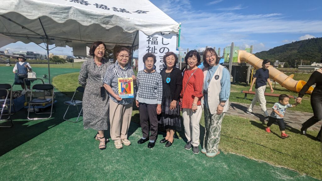 秋晴れのさわやかなお天気の中、ステージでは有志によるフラダンスや歌の披露があり、視覚障害や手話に関する活動発表展示や、障害者就労支援事業所の利用者の手作り品、焼きそばやパン等のグルメの販売もありました。全員参加のじゃんけん大会では、当クラブ会員も参加し大変に盛り上がりました。