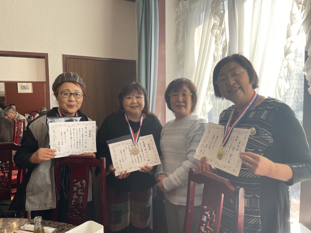 今年で3回目の「ボウリング大会」を笑いや拍手喝采(珍プレー好プレー)プレナミヤギで開催しました。参加者は10名、年齢ごとにハンディをつけて2ゲームしました。ランチ会場にて優勝・準優勝・3位・ブービー賞・ブービーメーカ賞の表彰式を臼井会長より賞状とメダルを授与し美味しいランチを食しながら楽しい一日を過ごしました。