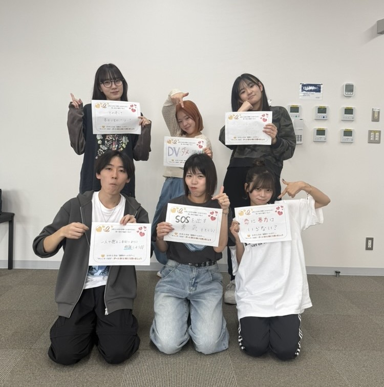 「国際ガールズデー」 2025.10.16 シグマ・ソサエティ青森中央短期大学幼児保育学科学生さんから“キャッチSOS!キャンペーン”へメッセージをいただきました。また例会後それぞれボードを掲げ女の子の権利、女の子のエンパワーメントの促進を願い ました。