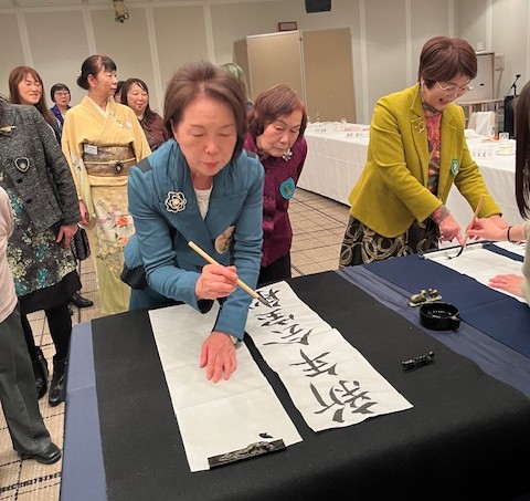 1月例会日に入会式・新年会・新入会員大歓迎会を実施し、今年の意気込みを感じる一日となりました。入会式では1月入会の5名が緊張した面持ちでご出席され、ソロプチミズムに忠誠を誓い、自己紹介と入会のきっかけや活動に関する抱負が述べられました。会長からは、「当クラブは今年50周年を迎えます。皆さんと共に奉仕の輪を拡げていきましょう。大きなお力添えにご期待申し上げます。」と挨拶がありました。新年会・大歓迎会では、会員のご子息による尺八演奏で幕開けとなり、会員は聞き惚れていましたがチャーターメンバーのお母様は、ドキドキしながら時間を過ごしたそうです。会食後は紅白にわかれ新春書初め大会を実施しました。お題の「新年会宝船」を一人一筆ずつ丹精を込めて書き、会員の気持ちが一つになった作品が出来上がりました。国際ソロプチミスト青森は、今年もよい年になりそうです。