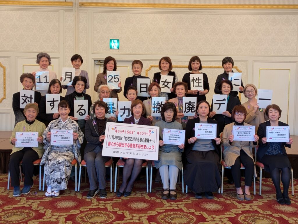「女性に対する暴力撤廃の国際デー」 2025.11.20 11月例会開始前に、キャッチ!SOSキャンペーン女性に対する暴力撤廃の国際デーに際し、パープルリボンとキャンペーンボードを掲げ、写真撮影を行いました、例会では担当委員会から、この国際デーについて説明を行い、理解を深めました。