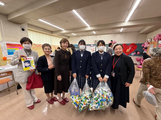 去る10月12日に千葉学園高等学校バザーを訪問し、会員に呼びかけて集めたペットボトルキャップを3袋を手渡しました。生徒の皆さんはそれを洗浄し、乾かしてから、さらに県内にある施設に送り、粉砕処理を経て家電製品のリサイクル製品になり、最終的に世界中のワクチンを送る活動に繋がっているそうです。SI八戸も毎例会で回収活動に協力しています。