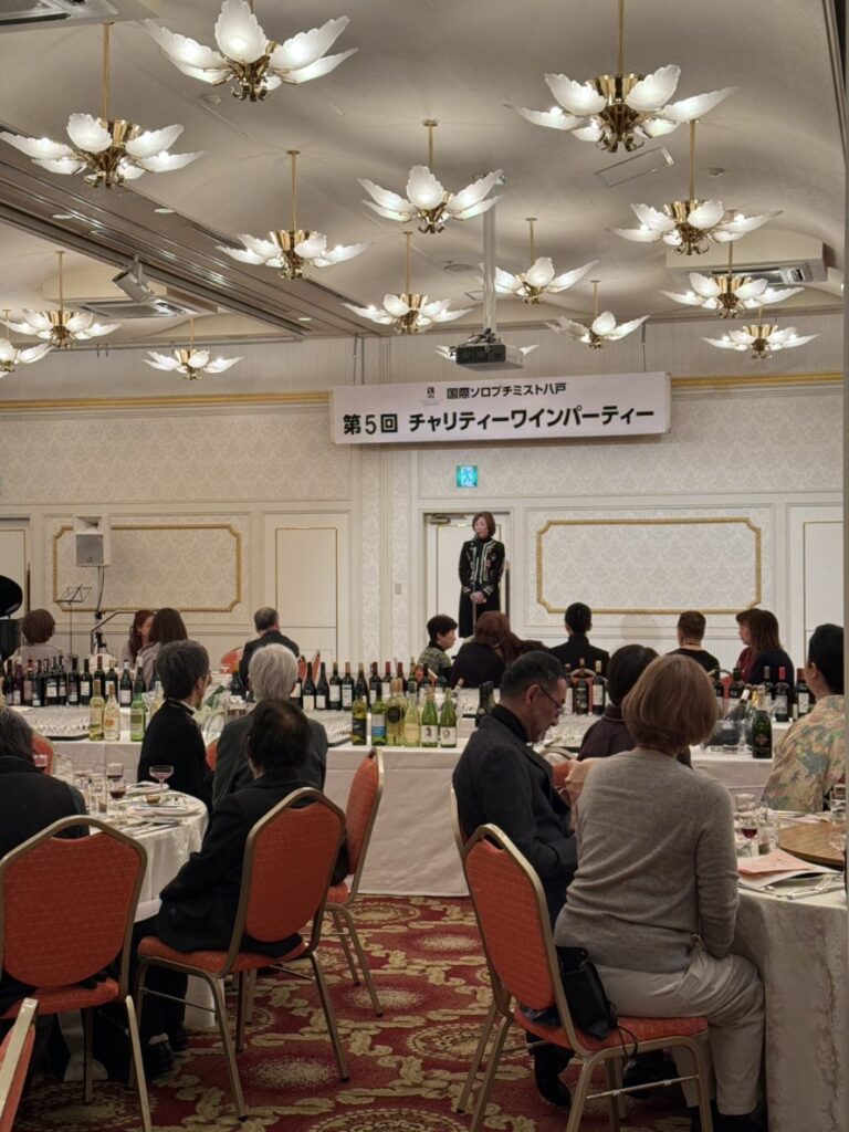 SI八戸は恒例の第5回チャリティーワインパーティーを去る11月21日に八戸パークホテルで開催しました。当日お集まりの約200名の来場者はフラ、ピアノ演奏と共に、会員が持ち寄ったワインなどで楽しい時間を過ごし、お楽しみ抽選会ではひと際盛り上がりを見せました。なお、会場時間前にロビーでクラブの広報パネルを掲示したり、キャッチ!SOSのポケットティッシュも配布し、私たちの活動もPRしました。