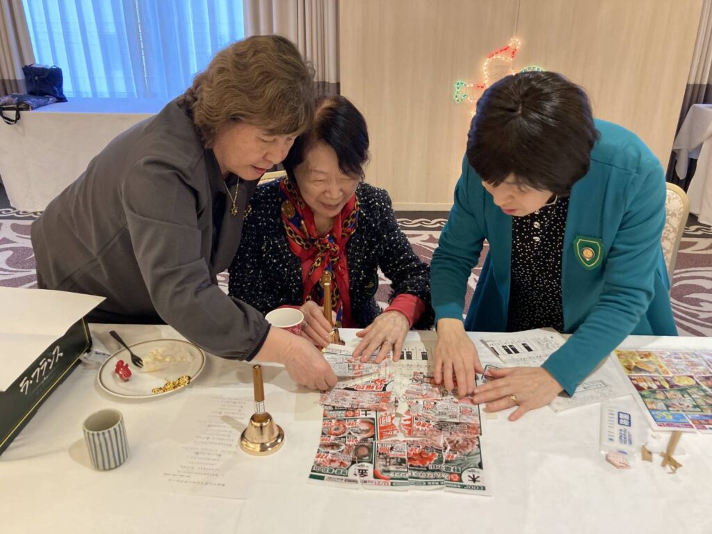 今年のSI鶴岡では、会員も多いに楽しみましょう!を合言葉にしております。ちょうど25日はクリスマスでお互いプレゼント交換、ゲームをやって盛り上がりました。又、春山会員の指導のもとハンドベルを使っての皆での大演奏会もやり、和やかな雰囲気に包まれました♡