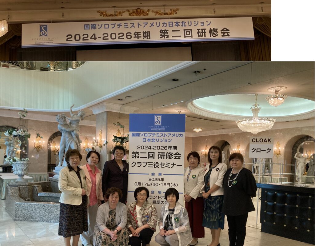 国際ソロプチミストアメリカ日本北リジョン2024-2026期第二回研修会に9名で参加しました。委員会研修では、各委員会の熱い思いのこもった説明を受け改めてソロプチミスト会員としての自覚を心に刻みました。記念講演の三砂ちづる氏の「津田梅子のこころざし」という演題の中で“all round women”変革を担う女性であること 弱さを気づきに 強さを分かち合う力に 不安を勇気に 逆境を創造を灯す光に この言葉はソロプチミスト精神にも繋がると感じました。とても有意義な時間をありがとうございました。