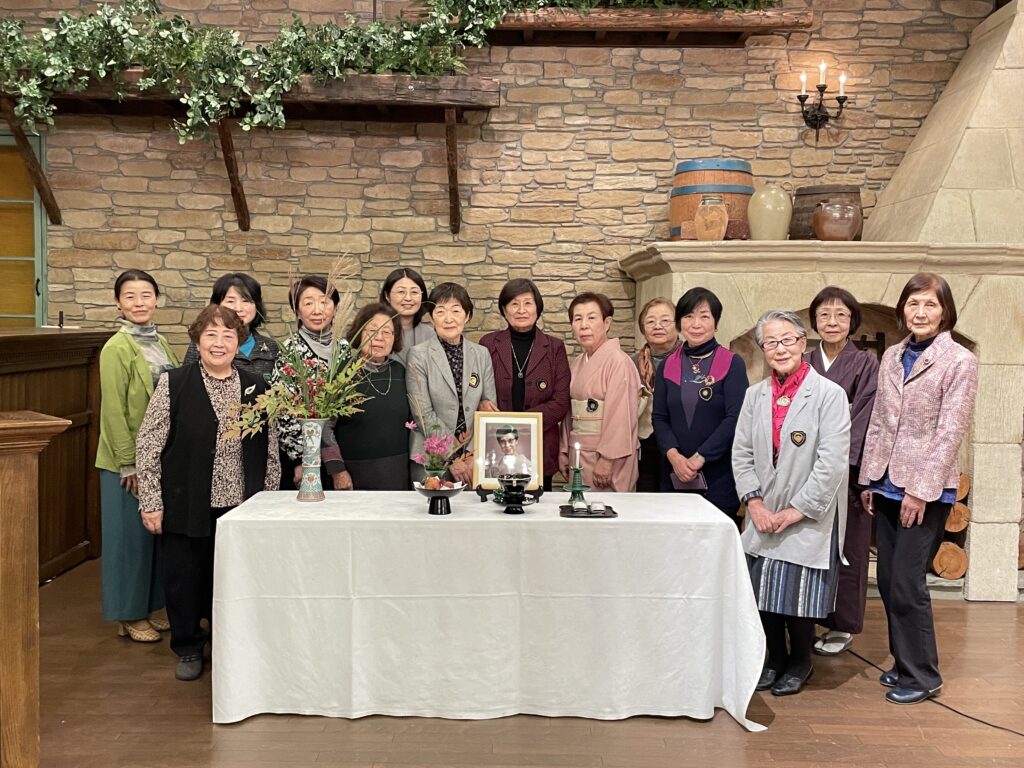 月見の茶会(ファンダーガバナーデー) 2025.10.30 10月例会にて、日本ソロプチミストの発展に尽力されました、ファンダーガバナー千嘉代子様をお忍びし、献茶会を開催いたしました。会員15名が出席し、千嘉代子様へ黙祷を捧げた後、お茶と主菓子、干菓子をいだだきながら心温まる時間を過ごしました。